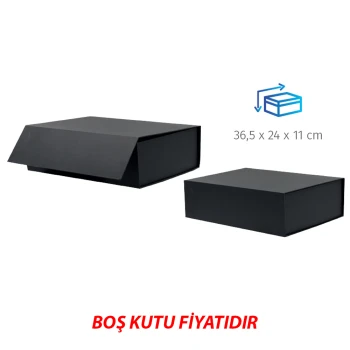 Yer kaplamayan katlanır kutu Katlama yerlerinde yapışkan bulunmaktadır, Mat siyahtır.